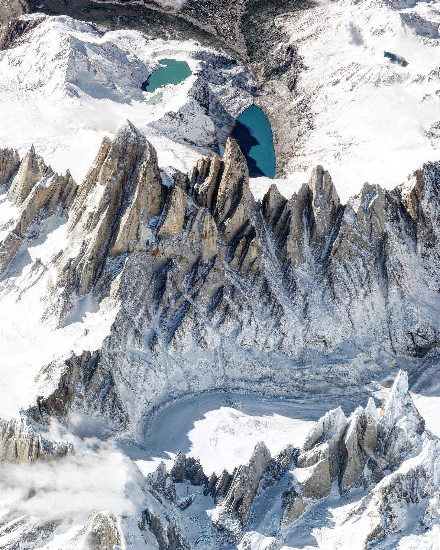 Monte Fitz Roy is a mountain in the Patagonia Region on the border of Argentina and Chile. Captured here by a satellite at a low angle, the peak has an elevation of 11,171 feet (3,405 meters) and sheer granite faces, making it one of the planet’s most technically challenging mountains to climb.